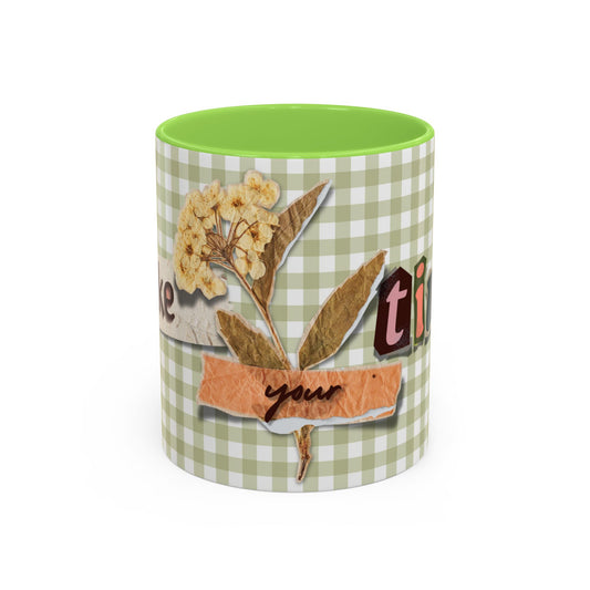 Floral Scrapbook Take your Time Mugs - Colorful 11oz & 15oz Coffee Cups with Inspirational Text