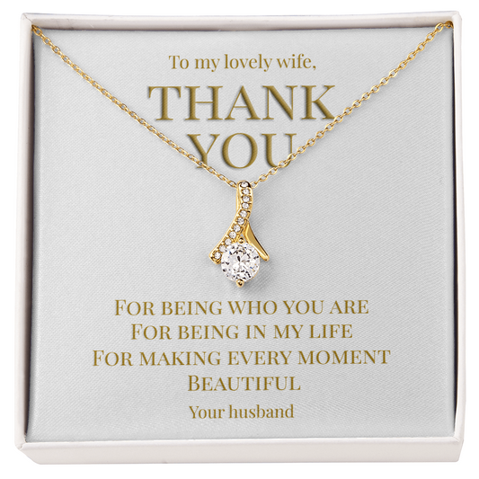 Perfect gift for your Wife, necklace with message card: Thank you for being you (Alluring Beauty variation)