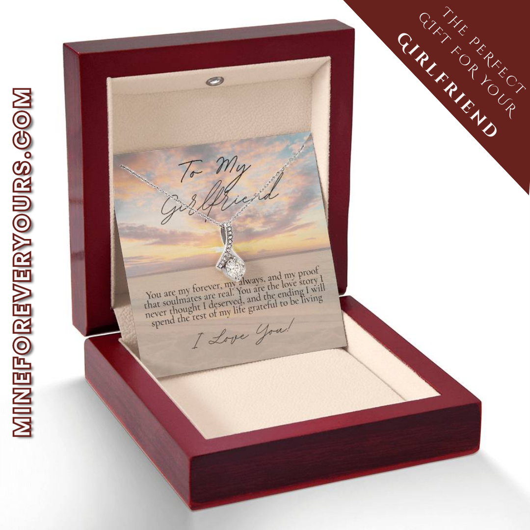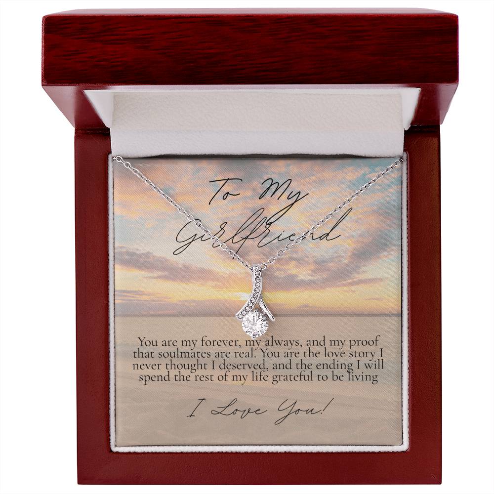 She'll Cry when she reads this! The Alluring Beauty necklace features a petite ribbon shaped pendant that is sure to dazzle your special someone. Whether it's a birthday or anniversary, make sure to get her a gift she will love for years to come.